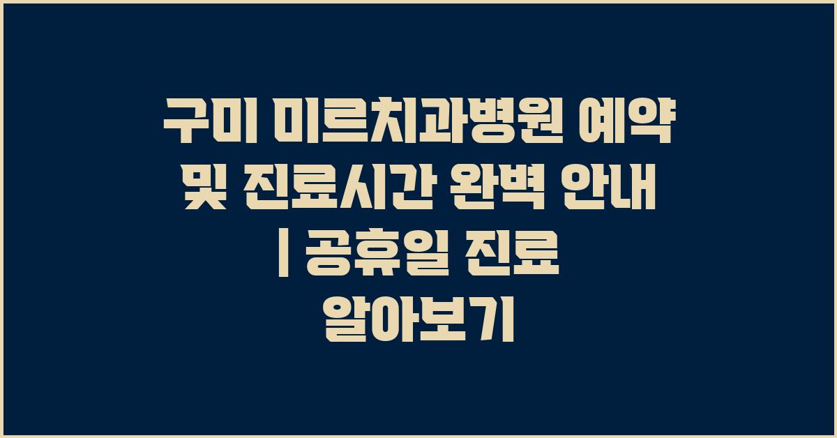 이 표를 통해 구미 미르치과병원의 진료시간을 한눈에 확인하실 수 있습니다. 공휴일에 대한 진료 여부도 미리 확인하여 예약 시 불편함이 없도록 하시기 바랍니다.