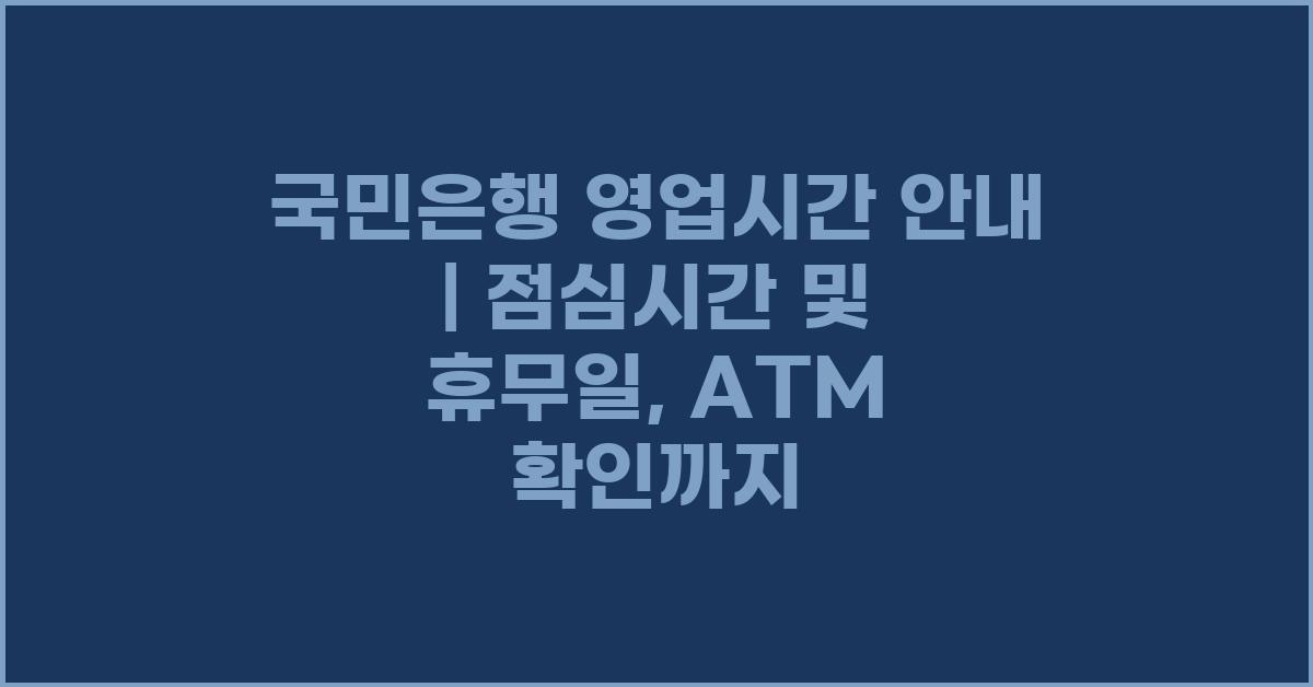 이렇게 국민은행 영업시간 안내 | 점심시간 및 휴무일 확인을 통해 필요한 정보를 잘 이해하고, 당황하지 않고 훨씬 효율적으로 은행을 이용하시길 바랍니다. 은행 가는 일이 더 이상 귀찮거나 스트레스가 되지 않길 바라요!