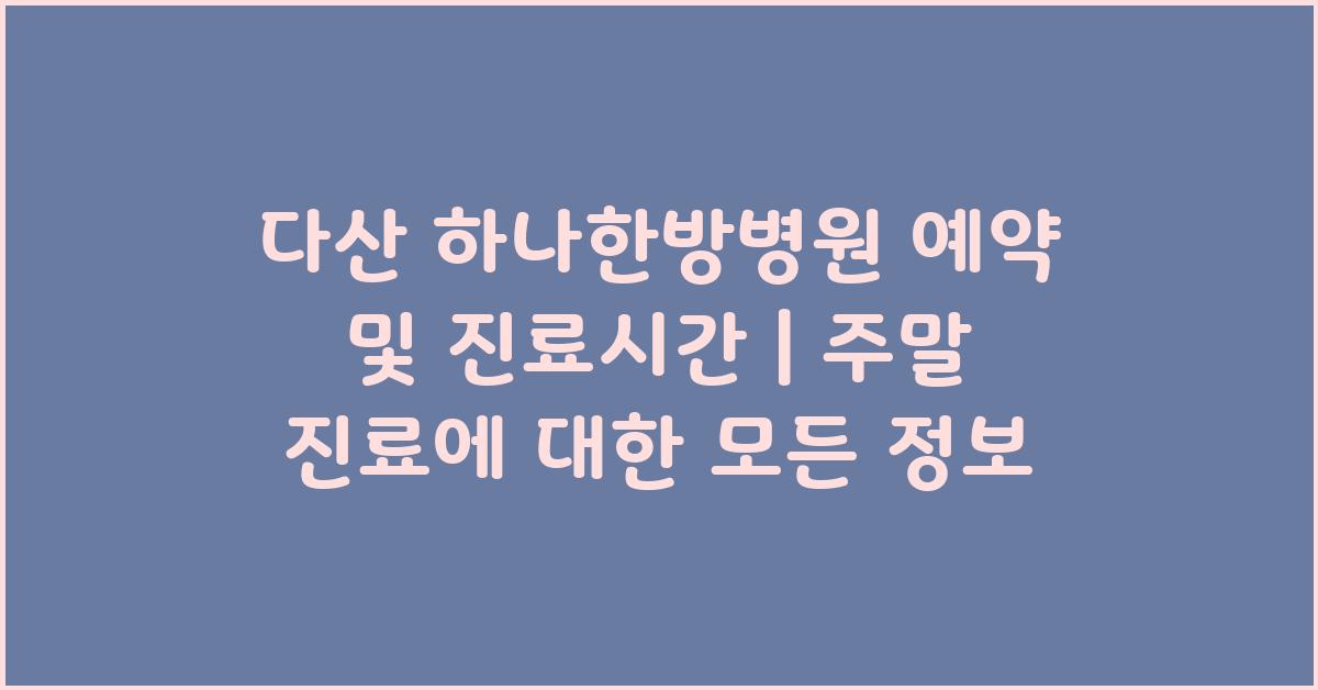 📅 다산 하나한방병원 예약 방법