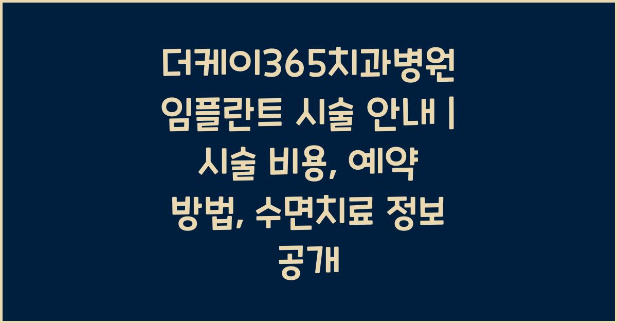 임플란트는 잃어버린 치아를 되찾을 수 있는 혁신적인 치료 방법입니다. 하지만 많은 사람들이 임플란트 시술에 대해 두려워하거나 궁금해하는 게 사실입니다. 치료 과정이 복잡해 보이기도 하고, 비용 또한 걱정스러운 부분 중 하나입니다. 그래서 오늘은 더케이365치과병원 임플란트 시술 안내 | 더케이365치과 임플란트 가격, 예약, 수면치료에 대해 자세히 알아보겠습니다. 여러분도 궁금한 점이나 고민이 있으시다면, 함께 이 내용을 천천히 살펴보세요!