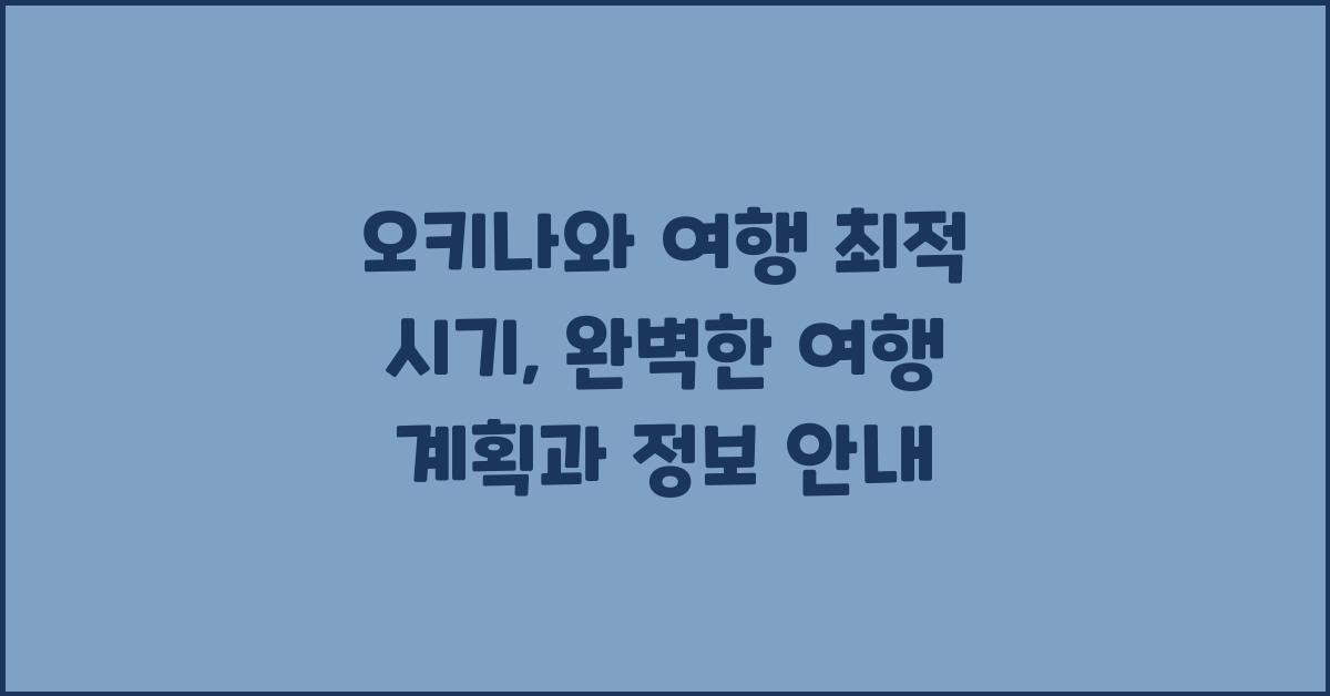 여러분, 여행 정보를 수집해야 할 시기가 왔습니다! 오키나와 여행 최적 시기에 대해 구체적인 정보를 알아보고, 여러분의 여행을 더욱 풍성하게 만들어 줄 유용한 팁들을 공유해 드릴게요.