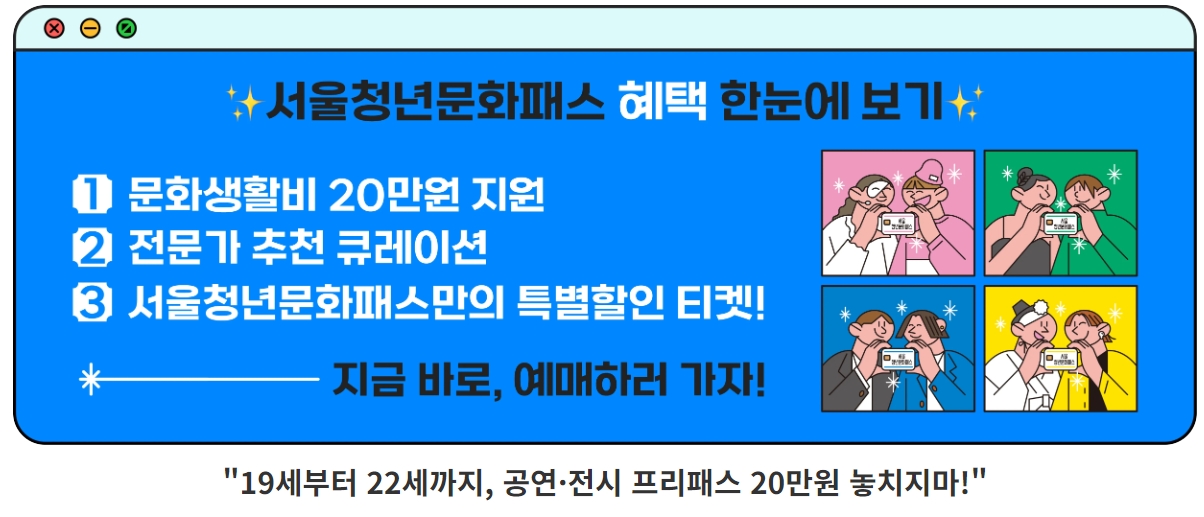 - 서울청년문화예술패스: https://www.youthcultureseoul.kr/