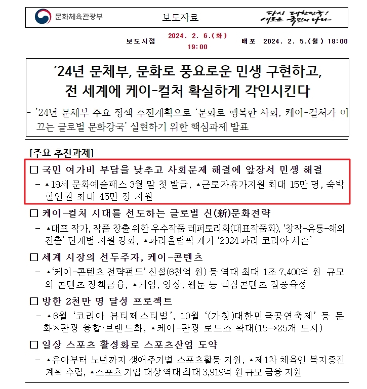 - 문화체육관광부 2024년 주요 정책 추진계획