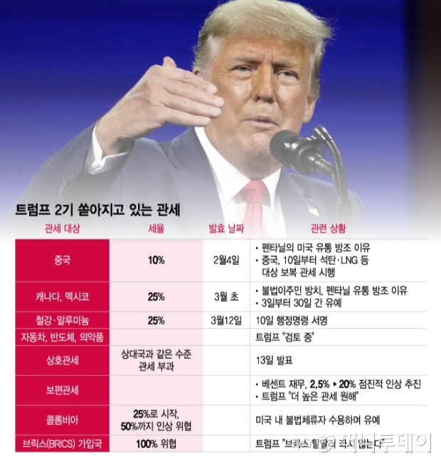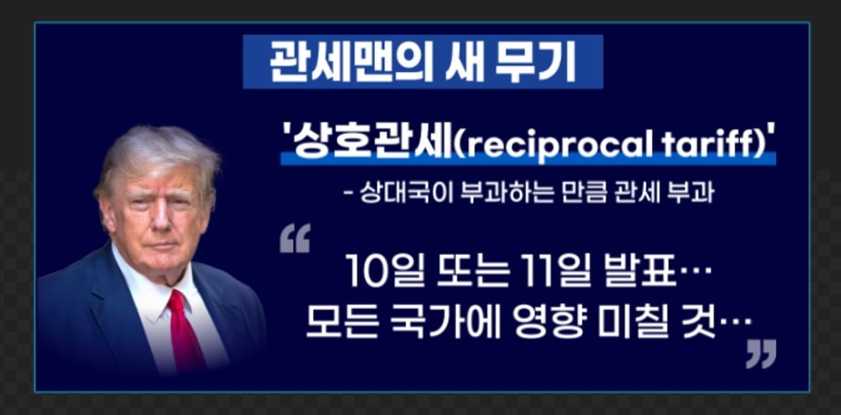 [1] 조선일보 - 트럼프, 상호관세 부과 공식 발표… 한국도 포함 가능성 (https://www.chosun.com/international/us/2025/02/14/XED64RUBFRA7BAPTHA6PINGX3Q/)