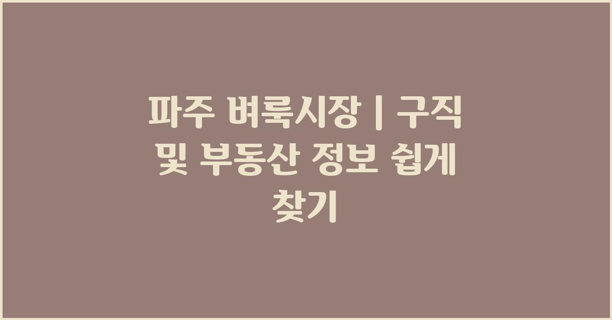🔍 부동산 정보, 파주 벼룩시장에서 확인하기