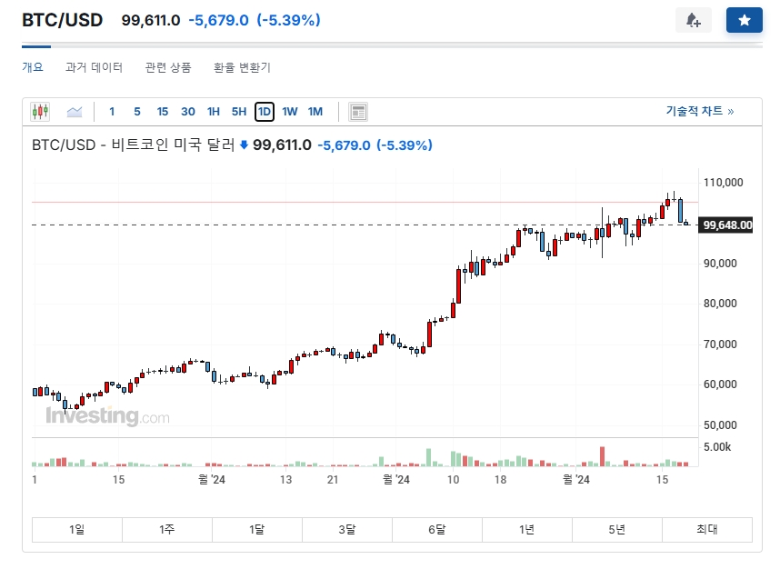 금리 인하 발표 이후 비트코인 가격은 큰 폭으로 하락했습니다. 한때 10만 달러를 넘었던 비트코인은 금리 인하 발표 이후 10만 달러 아래로 떨어졌습니다. 이는 투자자들이 금리 인하로 인해 가상화폐 시장의 불확실성이 커졌다고 판단했기 때문입니다.