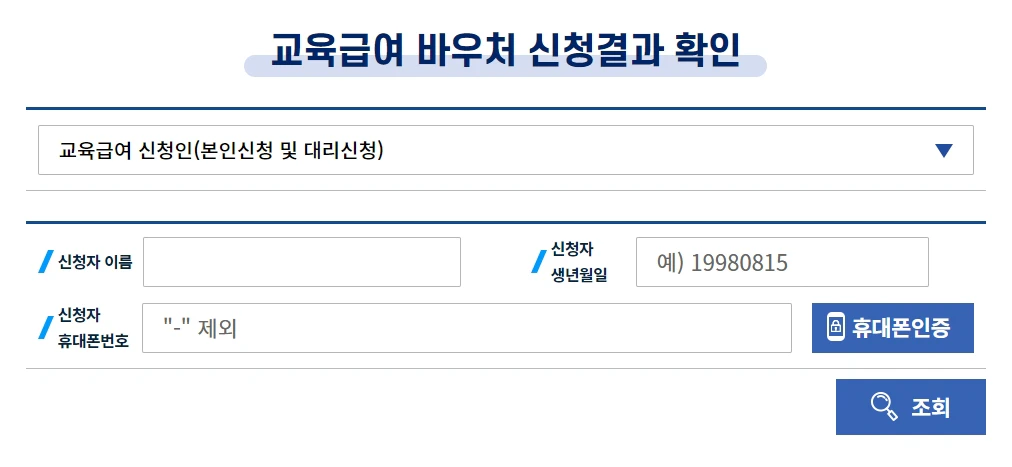 교육급여 바우처 누리집(e-voucher.kosaf.go.kr)을 통해 신청