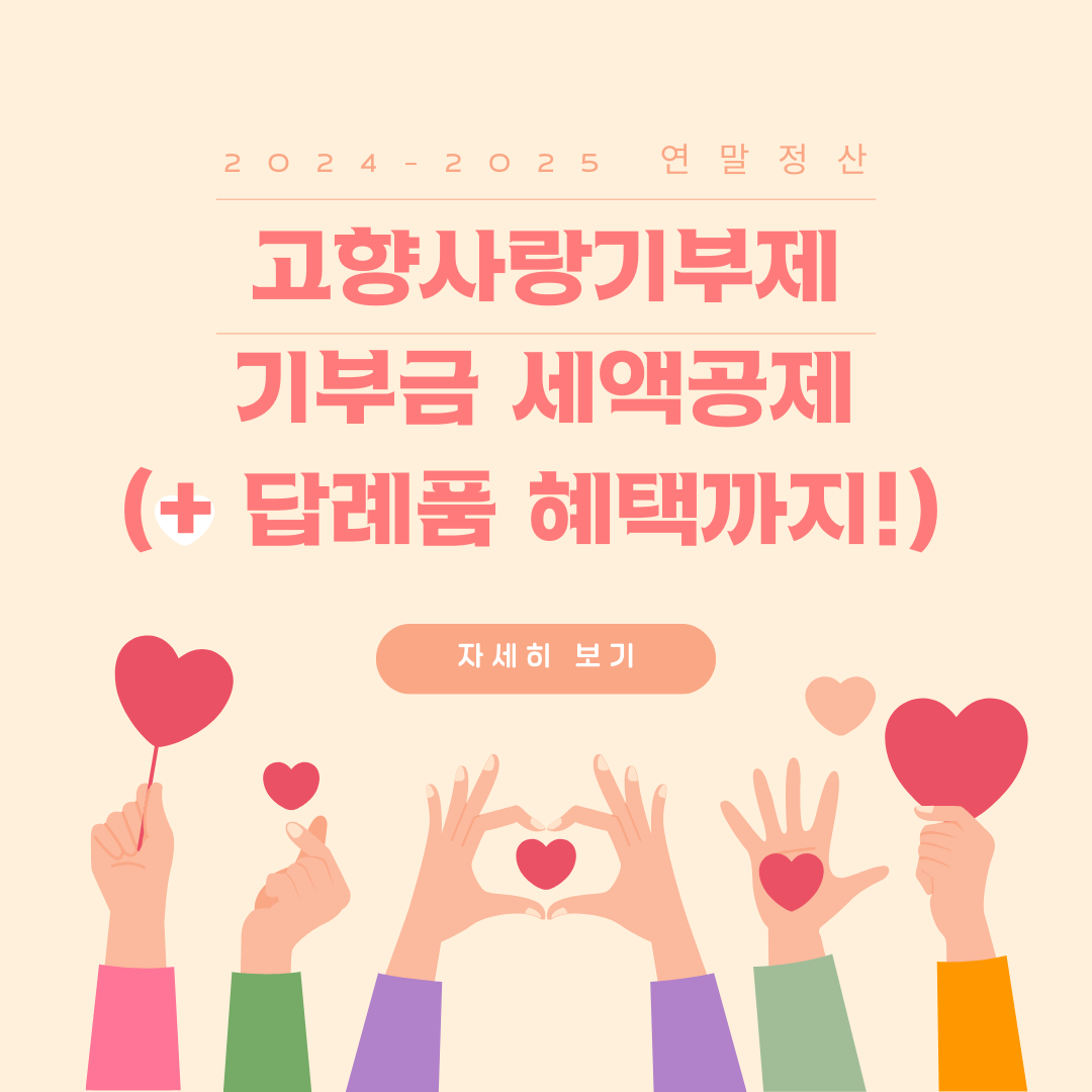 이제 여러분도 고향사랑기부제를 통해 고향에 대한 사랑을 표현하고, 세액공제와 답례품 혜택을 누려보세요! 기부는 작은 실천이지만, 그 영향력은 매우 큽니다.