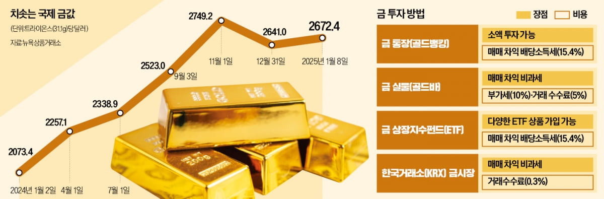 [3] 한국경제 - 역시 금이 최고야…30% 껑충 금 ETF 샀더니 (https://www.hankyung.com/article/202501108430i)