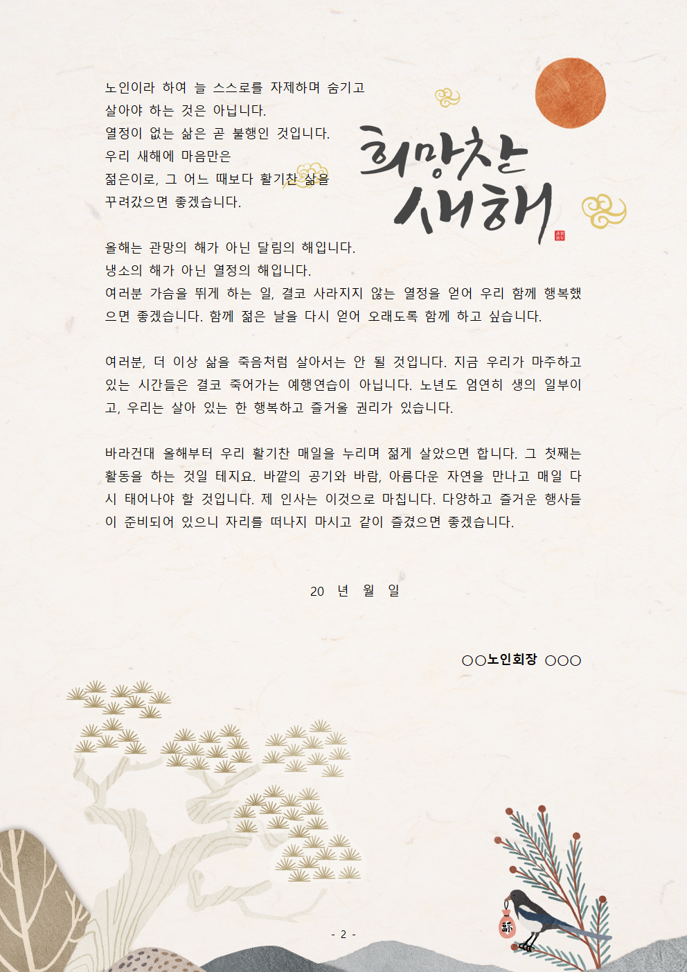 [신년사] 노인회장 새해인사말 (열정, 활동) (2025년)