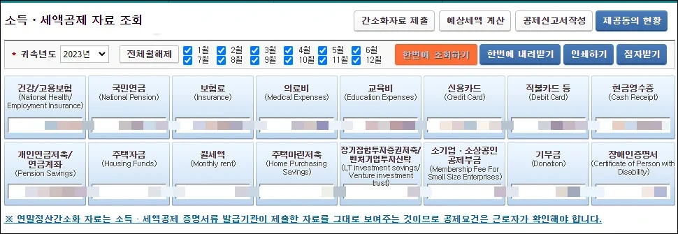 - 국세청 홈택스에 로그인 후, 연말정산 간소화 서비스를 통해 계산할 수 있습니다.