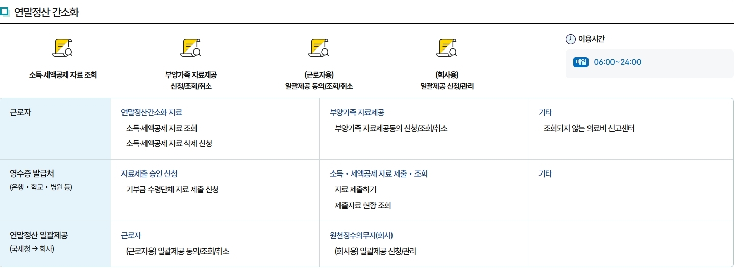 - 2024년 11월 15일 : 연말정산 미리보기 서비스 오픈