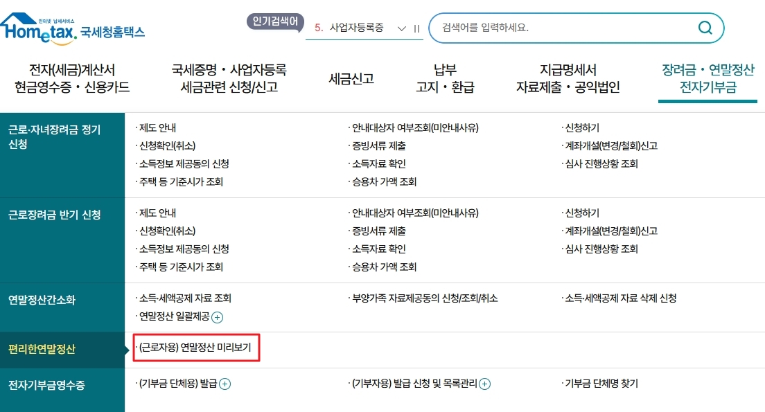 연말정산 미리보기 서비스